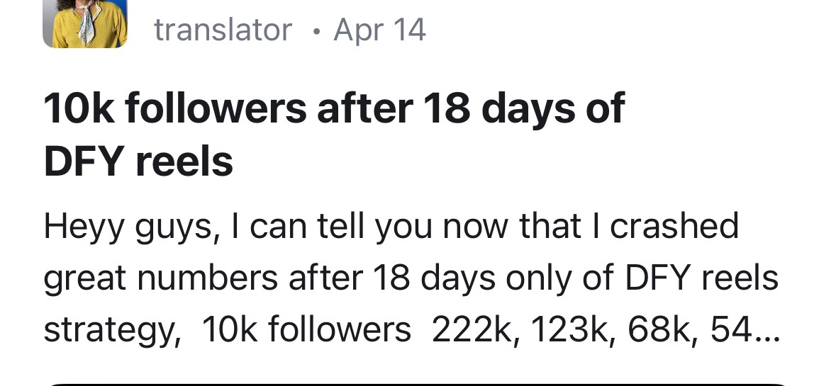 Plus, we are constantly adding new creators to the DFY Reels community every single week, bringing fresh strategies from different industries. This gives you the opportunity to see what works across multiple niches and get inspired by what successful creators are doing in their own spaces.
