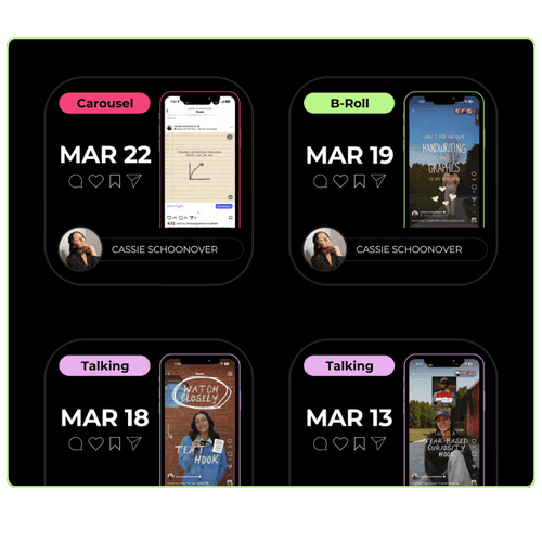 DFY Reels takes the guesswork out of content creation by giving you daily, ready-to-post Reel ideas from creators who've mastered strategic growth and 6-7 figure marketing on Instagram. Instead of reinventing the wheel and spending hours brainstorming, scripting, and editing, you can leverage what's already working and click post with confidence.