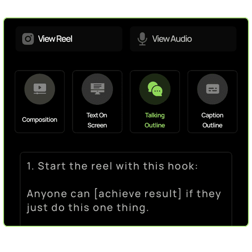 Each template comes with a clear outline, including the reel inspiration, trending audio, composition, text on screen, talking outline, and caption outline, but you'll still need to use your own footage, perform your own editing, and customize it to fit your niche, story, and audience.