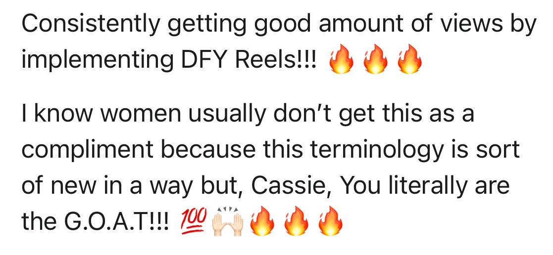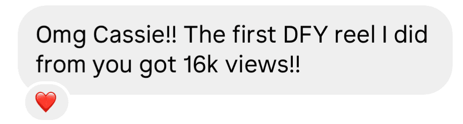Yes, absolutely! When you join DFY Reels, you'll get access to our Community, where you can connect with other creators on the same journey and get one-on-one support directly from Cassie. Whether you want personalized feedback, or just need some advice on how to level up your Instagram, we've got you covered.